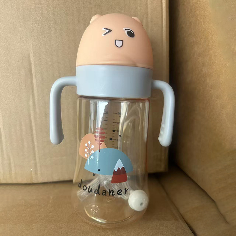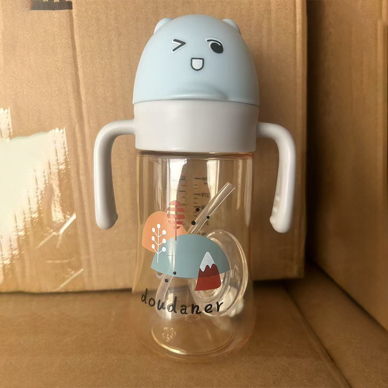 DOUDANER Baby Straw Cup – 300ml PPSU Anti-Colic Bottle with Cat Ears & Handles